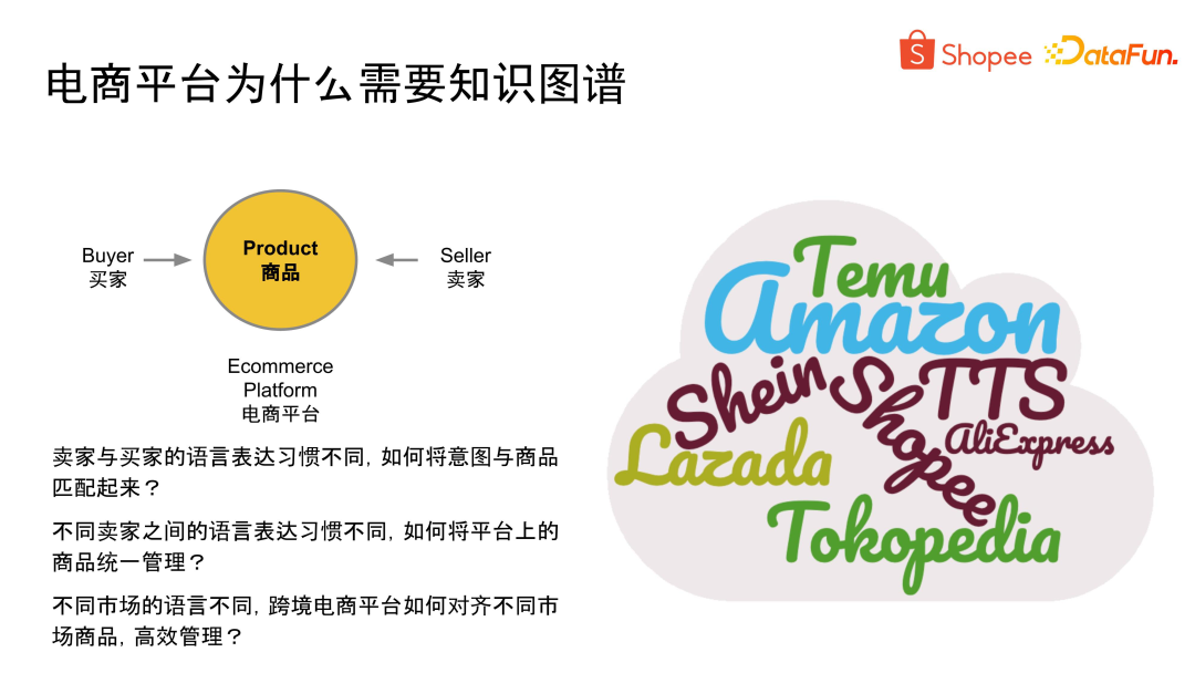 - 另外,对于跨境电商平台,比如 Shopee,面临着跨越不同市场和语言的挑战,如何对齐不同市场的商品,实现高效管理?