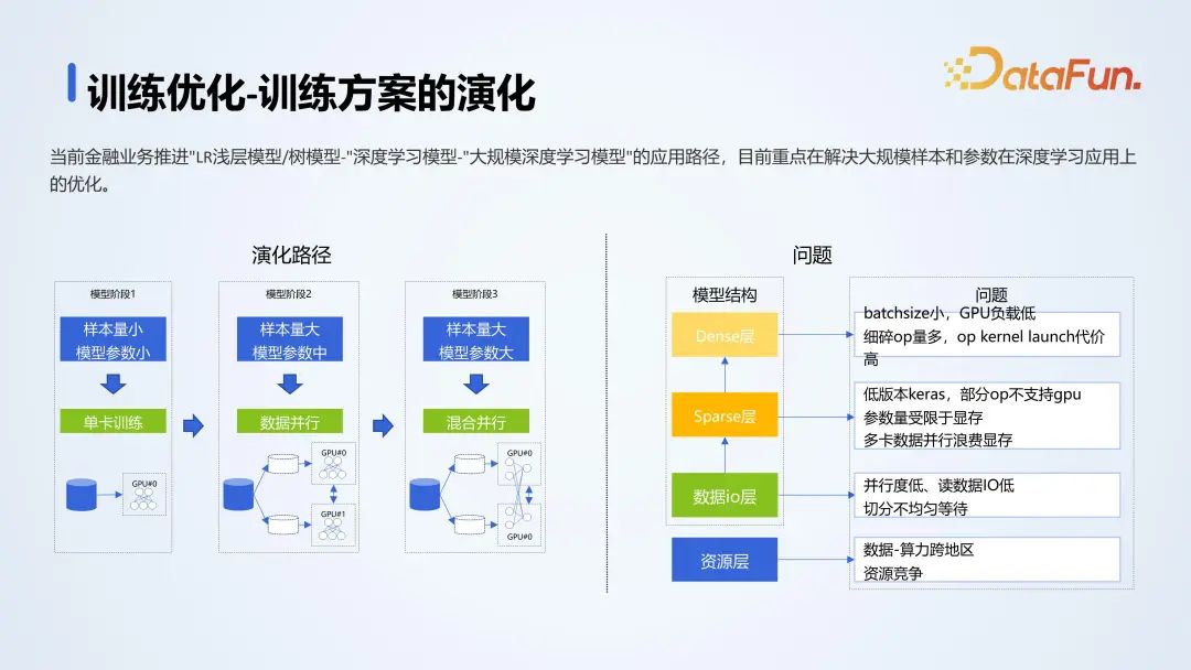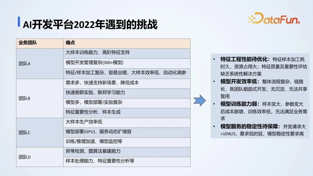 • 模型训练能力优化:当样本周期拉长、模型参数变大后,训练效率就会降低,无法满足业务要求。