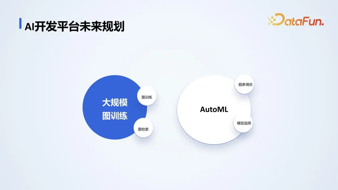平台未来的规划,包括两大部分,首先,继续完善大规模图训练;另外,在AutoML(自动机器学习)方面,对超参调优和模型选择继续优化。