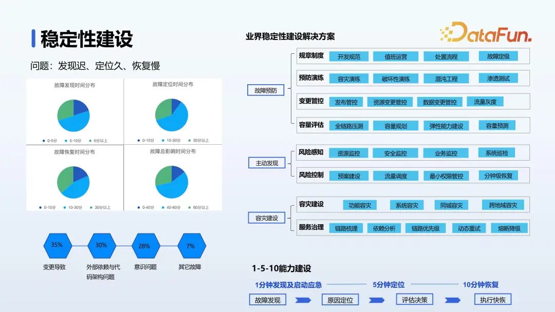 在系统稳定性方面,超过 35% 的故障是由于系统变更导致的,代码本身也可能存在需要优化的地方,关键依赖和代码性能问题会导致线上故障。意识性问题如未遵守开发规范,也是导致故障的原因之一。我们采用以下方案解决: