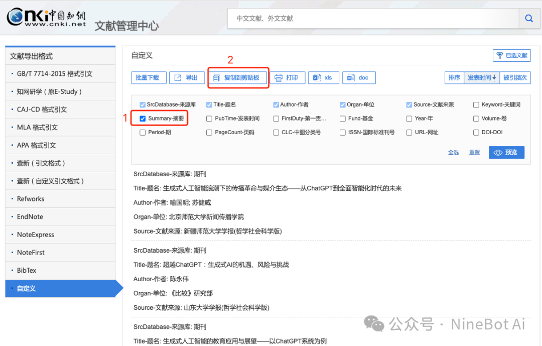 我们打开AI大模型工具,这里我们使用用的是NineBot AI✔ 在线使用地址:https://sourl.cn/PbBaq9➡️ ChatGPT必备的9种Prompt提示词框架➡️ ChatGPT:12个写作提示词帮你覆盖所有主流写作场景就这么轻轻松松,我们甚至可以一次性输入几十篇文献,这种方法简单快捷帮我们整理大量文献的重点内容,无需我们一篇篇阅读。目前有了所需要文献的重点内容,接下来就是把他们写成文献综述。