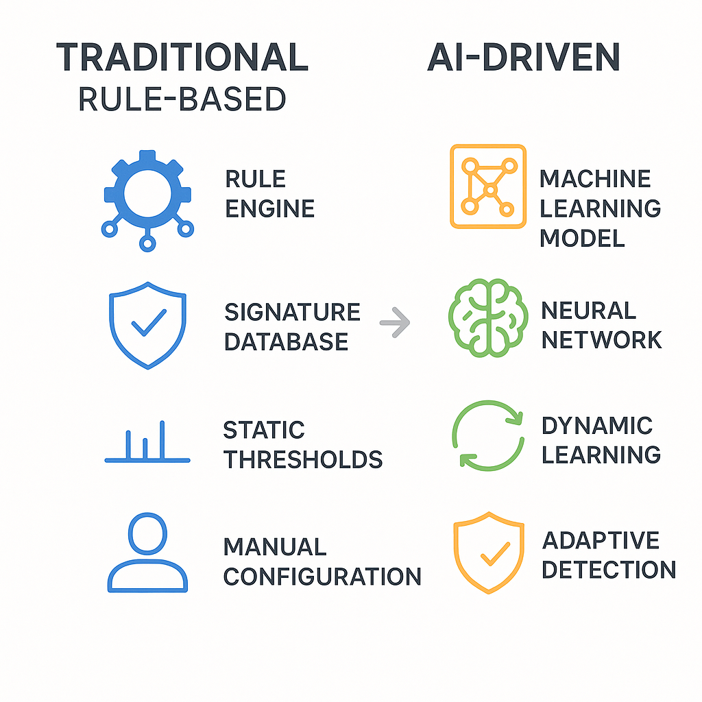为了更直观地展示AI驱动检测的代际优势,我们从多个维度对其与传统规则检测进行对比。