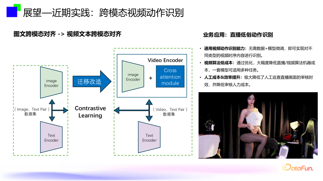 视频内容的安全审核是一个高难度的任务,尤其是在多模态的跨模态模型中,如何将图像、视频和文本进行有效的融合和对齐,一直是一个亟待解决的难题。近期,一些新的研究提出了通过改造图像编码器,使其能够处理视频内容,从而实现视频和文本的跨模态对齐。这一方法不仅提高了视频任务的处理效率,还降低了视频识别所需的计算成本。
