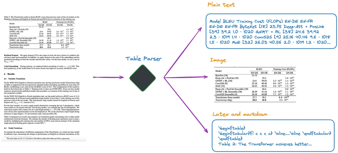 目前,市场上存在多种表格解析方法。一种常见的方法是利用多模态LLM(如GPT-4V)的强大文本理解和图像识别能力,直接从PDF页面中提取表格信息。另一种方法则是使用专门的表格检测模型,如Table Transformer,它能够更精确地定位和识别表格结构。