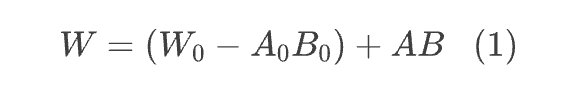 首先我们再来温习一下 LoRA。假设预训练参数为 ,那么全量微调时的更新量自然也是一个  矩阵,LoRA将更新量约束为低秩矩阵来降低训练时的参数量,即设 ,其中  以及 ,用新的 W 替换模型原参数,并固定  不变,只训练 A,B,如下图所示:为了使得 LoRA 的初始状态跟预训练模型一致,我们通常会将 A,B 之一全零初始化,这样可以得到 ,那么初始的 W 就是 。但这并不是必须的,如果 A,B 都是非全零初始化,那么我们只需要将 W 设置为: