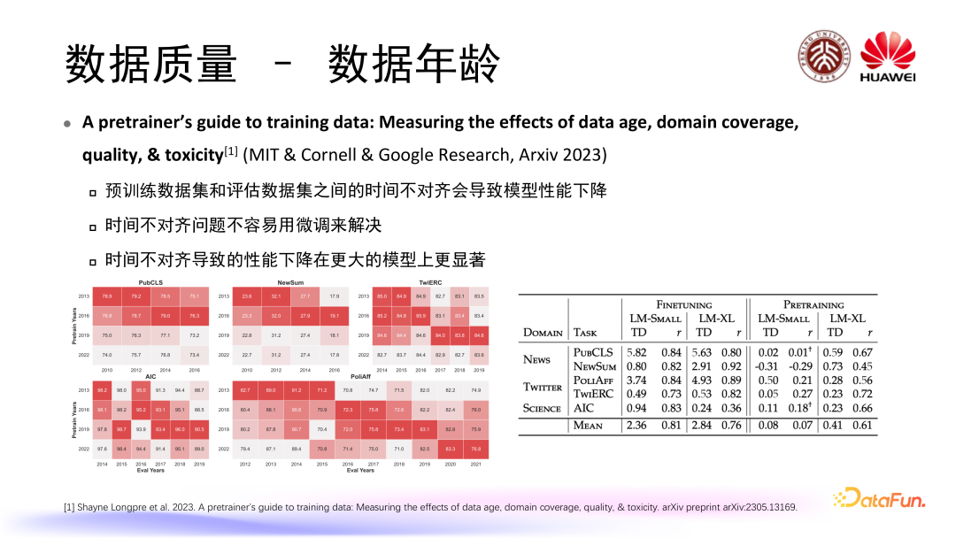 Longpre 等人的一篇工作通过研究数据年龄问题,发现以下结论: