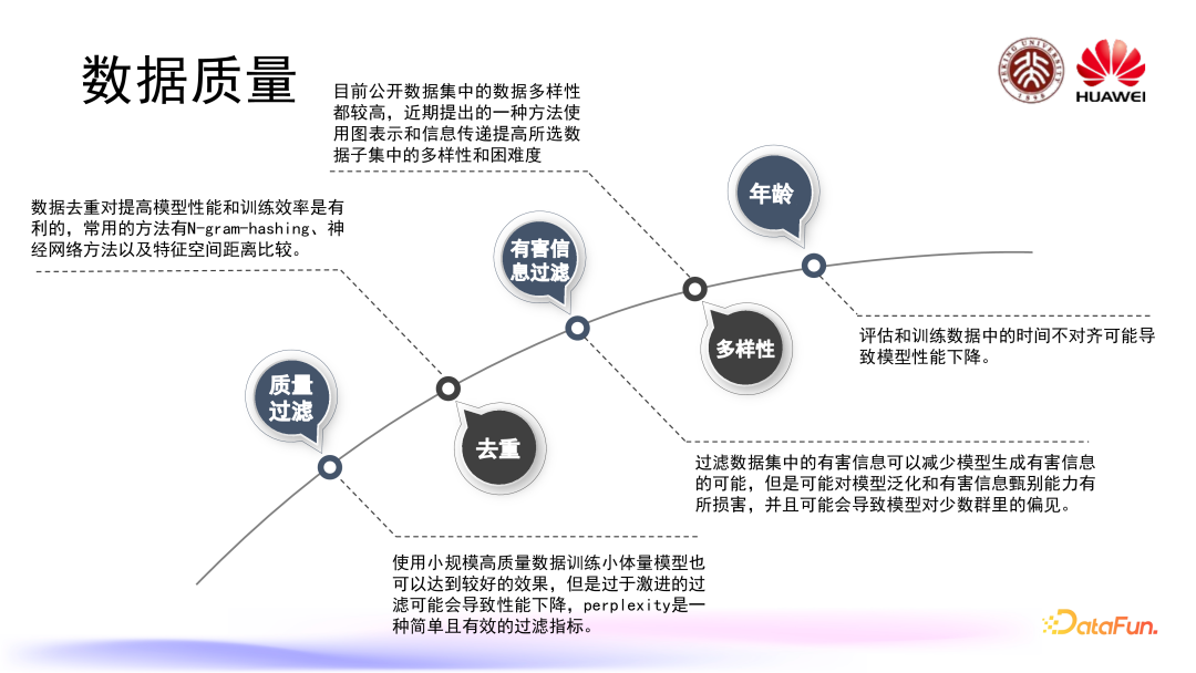 数据质量又可细分为质量过滤、去重、有害信息过滤、数据的多样性以及年龄等方面。