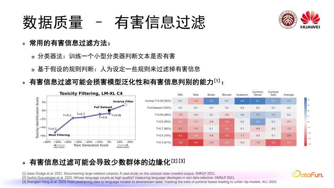 有害信息过滤可能会损害模型泛化性和有害信息判别的能力,还可能会导致少数群体的边缘化,进而引发社会偏见。