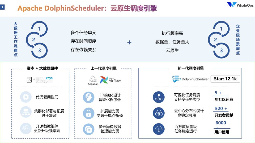 在上述技术背景下,白鲸开源专注于 DataOps 的开源商业化,主导了两个 Apache 顶级开源项目,即Apache DolphinScheduler 和 Apache