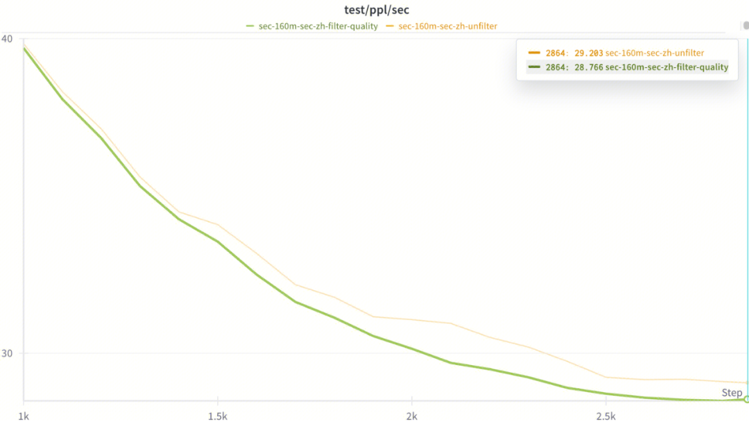 这次实验中,我们看到了一个明显的平衡点,在剩余20%数据的时候,达到了最低的困惑度。所以对于数据量庞大的来源,优先保质量。4.3.3.数据配比