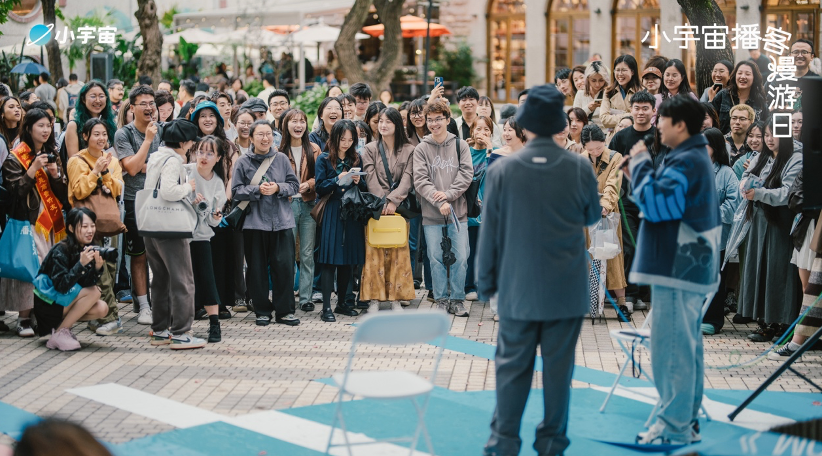 极客公园:这是你们第一次正式办线下活动,有主播说内容行业好久没这么热闹了,为什么决定要办一场线下活动?Kyth:其实两年前就想办了,不过那时候由于疫情原因搁置了。今天小宇宙上线差不多四年半 ,播客行业欣欣向荣,创作者和听众生态都在稳步地、健康地成长。我们觉得播客这种非视觉化的内容形态蕴含的,听众与主播之间的连接的力量、听众对主播的信任,其实需要一个场景来去视觉化的呈现和释放出来,可能会对整个行业有更大的推动。这可能是我们今年最重要的一次创作者生态和品牌曝光活动,用这个场景把所有元素糅合在一起。对平台来说,这也是我们试试自己能力的机会,我们也想用自己的理念、方法、气质来办活动。Kyth:肯定是超出预期。我们原先预想会来 7000 人,最后来了 2 万人。极客公园:活动挺有新意的,特别是你们做了一些科技的东西,用 NFC 展示主播和听众的数据、APP 上的动态 H5 页面等等,你们为什么会想到要做这些?背后的思考设计是怎样的?Kyth:这些是我们非常骄傲的,也是我们很多同事投入了极大精力去设想和落地的玩法。作为技术公司,我们还是希望在线下融入足够多的技术元素、而且最好结合线上产品已有的功能。比如敲章功能,敲完章之后、可以拿到 App 里的贴纸,这是只有当天才能得到的贴纸、大家将手机碰在一起还可以交换贴纸。还有 NFC 技术,让手机靠近装置,播客主播就可以将自己的节目数据投到大屏幕上,我们希望让中小主播、甚至不太为人熟知的主播们感受到,每个主播都可以有自己的「高光时刻」。这些都是策划时有意设计的,我们当时花了很多精力思考现场会来哪几种角色、以及每一种角色应该得到什么样的体验,最后再推导下应该怎么呈现。这是一个自上而下、从目标去设计的过程,总共花了三个半月。极客公园:我看你一直在现场走动,从做线上产品转到了线下活动,你的感受有什么不一样吗?包括对于听众和主播之间的连接有什么感悟吗?Kyth:让我印象深刻的是这种情感表达的自如和肆意,我之前想象当中,大家会更含蓄一点。这次很多听众都是带着想去追的主播和想见面的人来的,很多人都是准备了礼物给主播,比如手写明信片等等。这些主播全都是他们听过 50 个小时、 100 个小时以上的。这种情感来源于一直听到你的声音,过去的 3、4 年你给了他非常大的力量,这种情感的力量会在当天爆发、释放出来。 漫游日 Meetup,观众围绕着主播 | 图片来源:小宇宙极客公园:这让你对音频这种内容形态有了哪些更深刻的思考吗?比如对它的陪伴感、信任感、真实感有哪些更深的体会?Kyth:我觉得结合我们这个时代或者外部大环境来说,这会更加明显一点。一方面,很多人特别是年轻人,可能是迷茫或者焦虑的。另一方面,他们仍然是比较孤独的,受到非常非常多的信息冲击,但仍然没有找到自己内心的确定性。我觉得播客能够提供一些确定性,提供一个「避难所」、「心安的角落」。我觉得在大环境有更多不确定的情况下,播客的受欢迎程度和价值应该还会继续上升。极客公园:你们有一整面墙都在讲用户眼里播客是什么,大家会用到「布洛芬」、「救星」、「急救呼吸机」这样的词,情绪价值非常满。你怎么看这些形容词?你比较喜欢哪个?Kyth:我觉得最准确的还是一个用户写的,「随身携带的避难所」。我希望它是你随身携带的、可以在困顿或者焦虑的时候,寻找的一个「处所」、一个「逃遁的方向」。这是我们团队很欣慰能在这个时代提供的价值。另外几种说法,我自己也觉得很受鼓舞。鲁豫老师说小宇宙是「救星」,黄轩老师说是「精神绿洲」,还有用户说是「社交代餐」,我比较认同,在真实生活中我们很难听到那么多陌生人在耳边对话,播客是一种汲取社交能量的方式。周轶君老师说是「检索工具」,我也希望小宇宙未来还能提供更多的工具属性。Kyth:治愈的价值是相对最明显的,但各种各样知识性的、实用性的,或者说是行业性的、讯息性的、点评性的内容,也是大家所需要的。Kyth:还是是那个词,「随身携带的避难所」。小宇宙想通过播客,为一代年轻人提供一个避难所式的、有家的感觉的精神空间。有些节目可能像客厅、有些节目可能像卧室、有些节目可能像书房,但都是家。我们希望听了小宇宙之后,你比听之前是感觉更好的,就像家是充电的地方一样。如果从数据或者商业规模角度上来讲,我们虽然做了快 5 年,但其实小宇宙其实在整个互联网行业大盘还是比较小。我更看重的是这些对人「虚」的影响。Kyth:我真心觉得是这次小宇宙播客漫游日活动。如果用一个比喻的话,可能过去四年多,团队所有用心做的东西、可能外界看不到的东西,在这一刻回馈被具象化了。当我们实实在在感受到有一个人,因为听播客之后变得更好了、认识了新朋友等等,很多时候做产品,看到这一幕已经很满足了。我们需要这些价值感的东西。