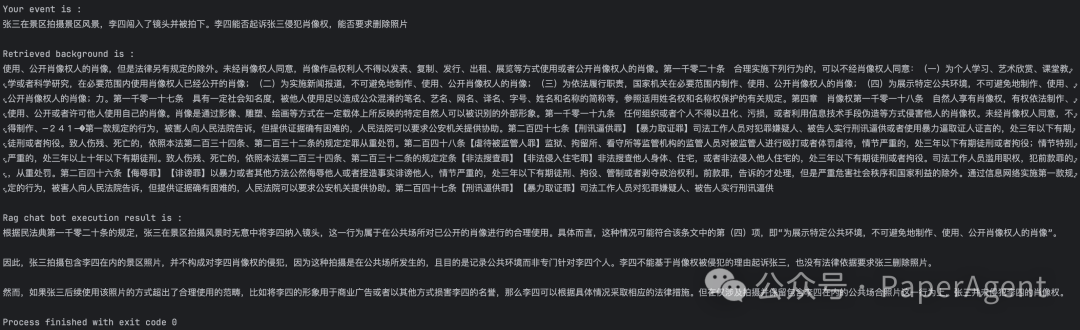法律咨询案例:基于RagPlanner,搭建了一个简单的法律咨询智能体,通过检索民法典和刑法中的相关条例并结合案件背景给出相关的法律建议。