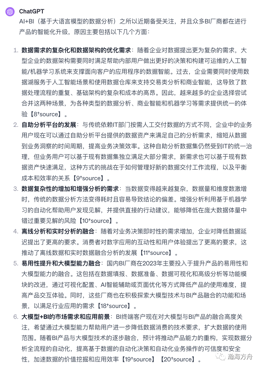 由于大模型的出现,目前市面上AI+BI类的产品层出不穷,可谓百花齐放,为什么在B端市场如此火爆,先来看看GPT4是怎么说的: