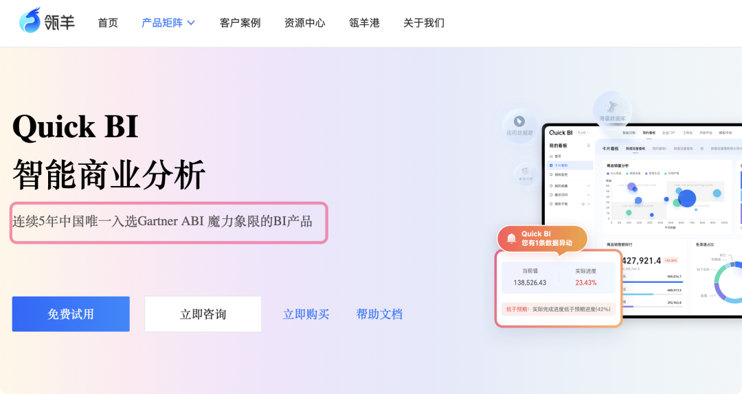 QuickBI 标榜自己入围ABI,这就好像明明 Microsoft 入围了 Gartner ABI 象限,但是PBI圈子统一口径说“PowerBI 入围”一样魔幻。‍‍