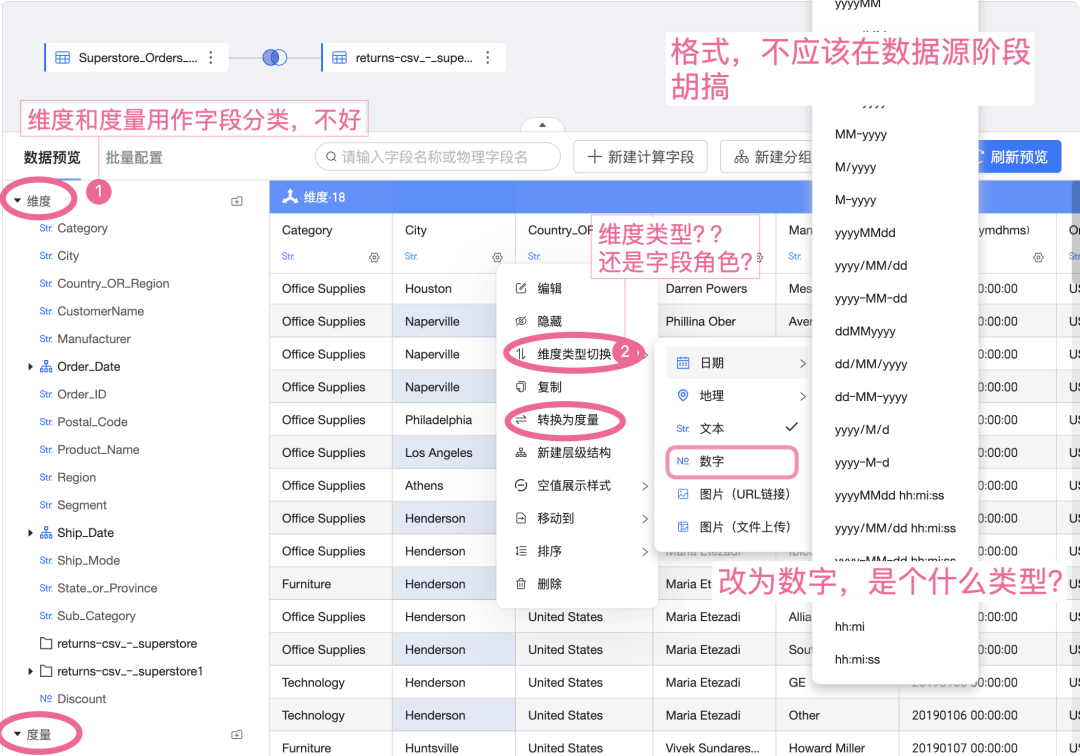 其次,把图片、日期格式、地理角色等完全视为“维度类型切换”之中,简直也是懒惰到了极点。