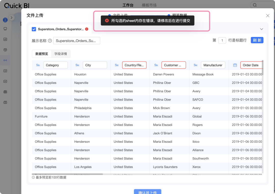 【补充】有人说不应该用“Tableau 示例数据源”来测试 QuickBI,其实仔细看QBI帮助文章中给出的官方数据示例,也是从 Tableau “超市示例”文件改改而来的罢了。