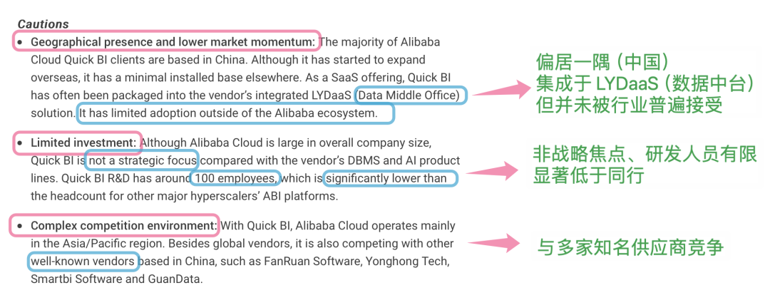 说到对 Alibaba Cloud 的担忧(Cautions),Gartner 倒是没有遮掩。‍‍‍‍‍‍