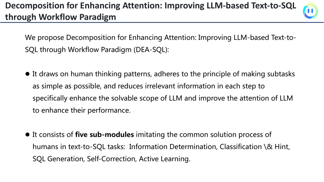 论文标题:Decomposition for Enhancing Attention: Improving LLM-based Text-to-SQL through Workflow Paradigm