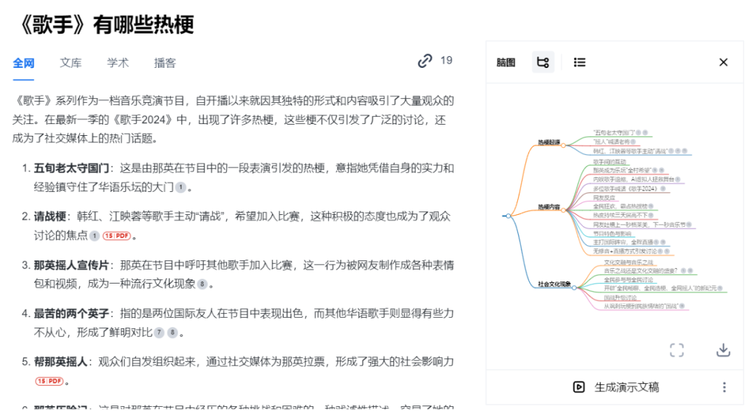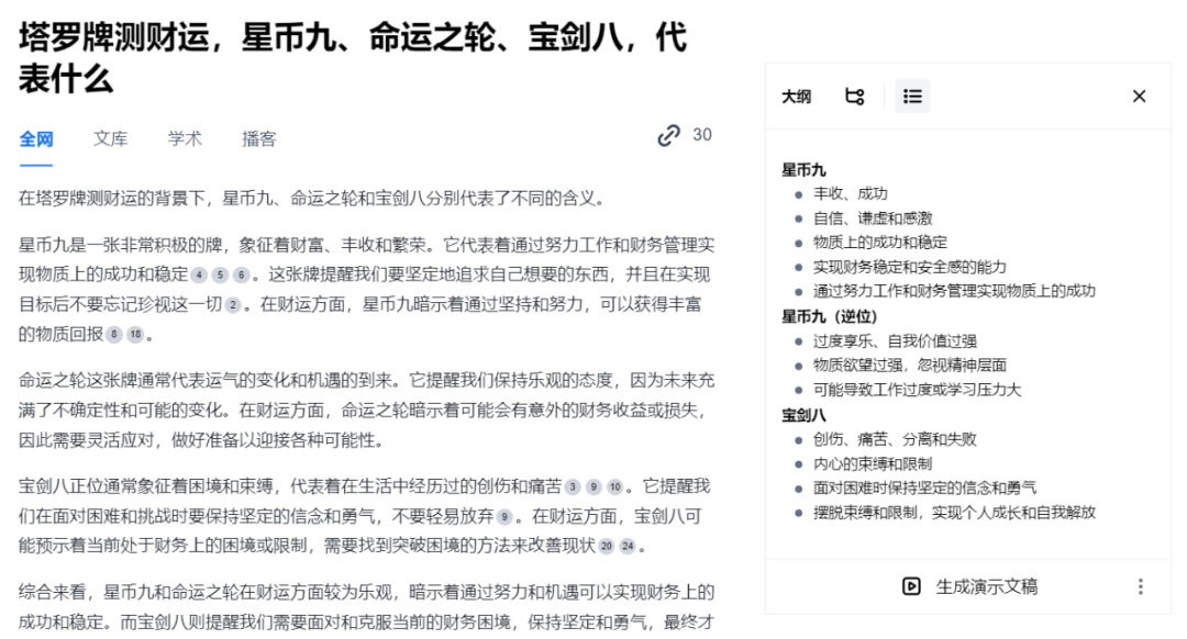 除了基本的搜索功能,秘塔AI还提供了如演示文稿参考等附加功能,这些功能不仅丰富了用户的使用体验,也为特定场景下的应用提供了便利。