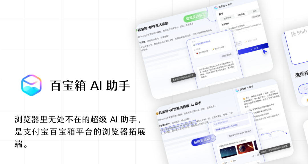 自外滩大会蚂蚁集团发布支小宝、蚂小财、百宝箱等 AI 产品之后,我们又关注到他们于 10 月 29 日,上线了一款浏览器插件,百宝箱 AI 助手。