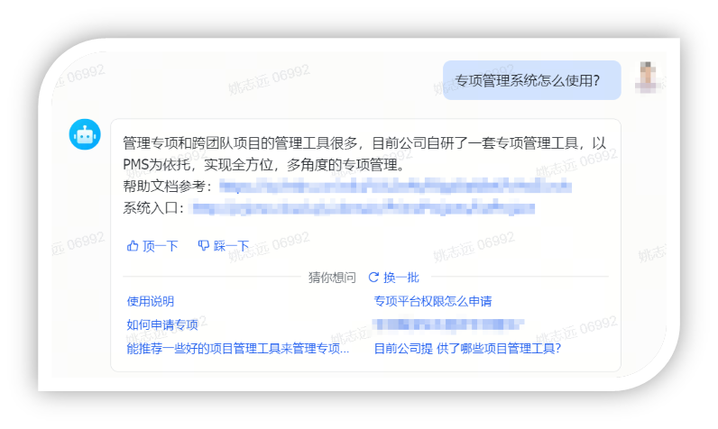 随着业务的发展,项目经理并行推进的复杂项目越来越多,对应的干系人沟通复杂度、业务知识储备、项目日常管理事项等等也在同步增加。与此同时,人工智能技术的快速发展为项目管理领域带来了新的可能性,尤其是基于大语言模型(Large Language Models, LLM)的生态系统逐渐成熟。大语言模型凭借其强大的自然语言处理能力,能够高效处理非结构化数据并生成语义清晰的洞察。- 同时支持多个事项,工作频繁切换和打断,忙时难以保障及时响应。部分任务手工处理耗费时间、精力。